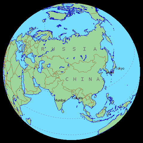 Prvi Tan-tien (gornji) koji se odnosi na “Zemlju”, odnosno na umnu manifestaciju “Zemlje”, nalazi se na istočnoj hemisferi planete (vidi sliku dole), a još preciznije pokriva zonu koja polazeći od Tibeta (Himalaji)i obuhvata Kinu, Indiju i okolne zemlje.