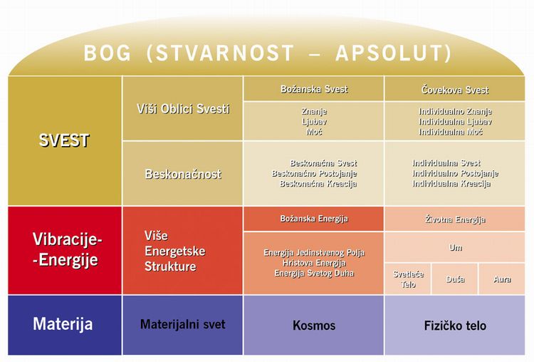 Čovekje jedinstvo Svesti, Vibracija, Energija i materije, pa ipak zbir ovih procesa ne može definisati čoveka u celini, nego samo može da ukaže na manifestacije koje se dešavaju u njemu, a čiji izvor je - Bog (Stvamost, Apsolut).